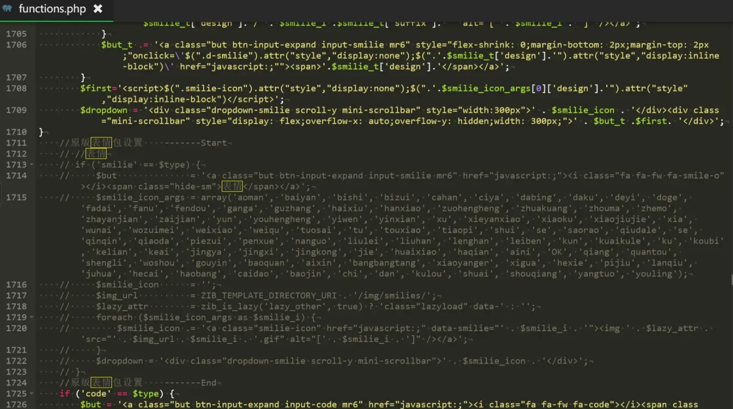 找到 /wp-content/themes/zibll/inc/functions/ 文件夹,打开你的 functions.php ,搜索 “//表情”