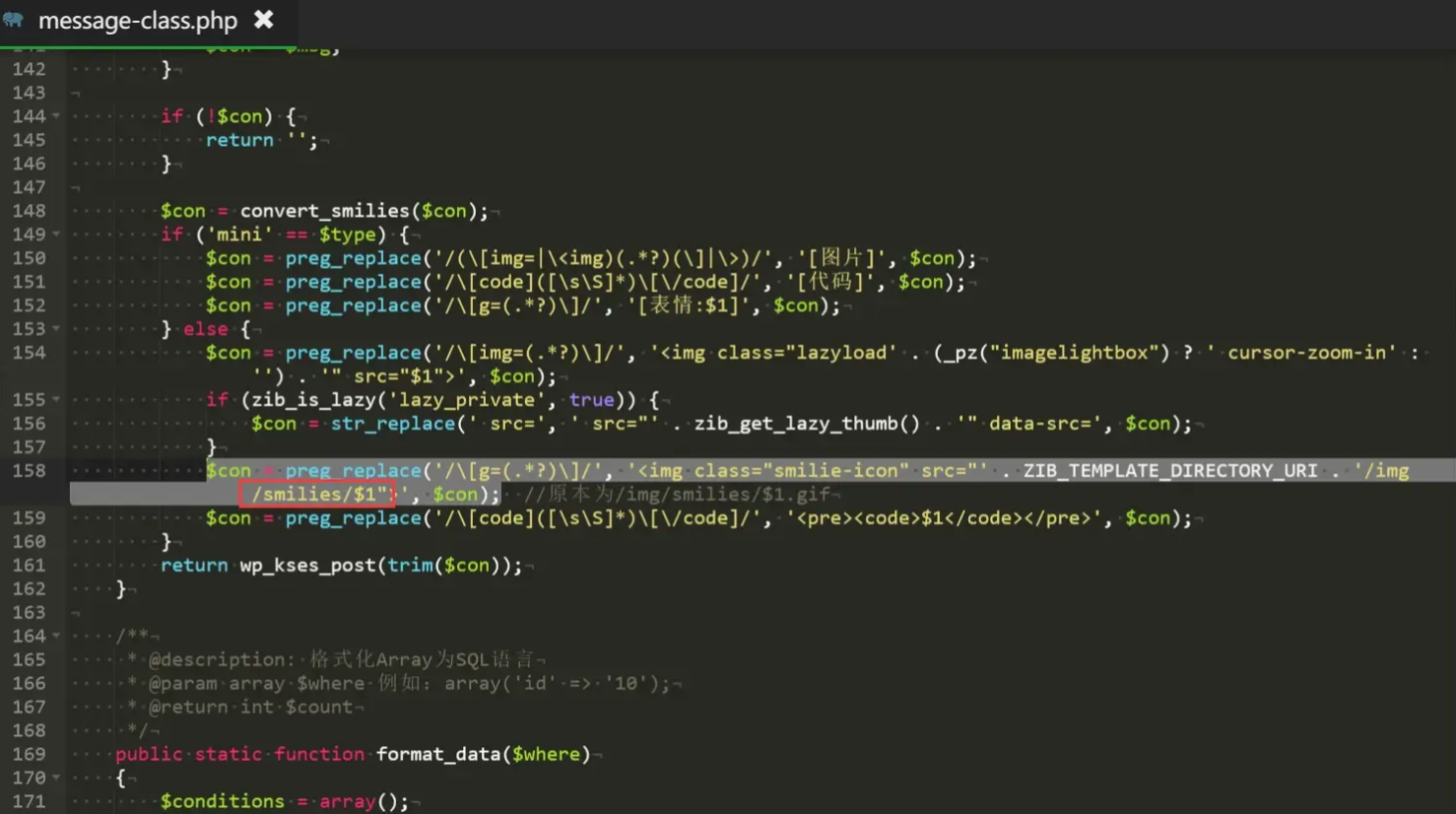 然后找到 inc\functions\message\class 文件夹,打开 message-class.php,大约在141行,你们看看是匹配正则表达式 g=.*? 什么的